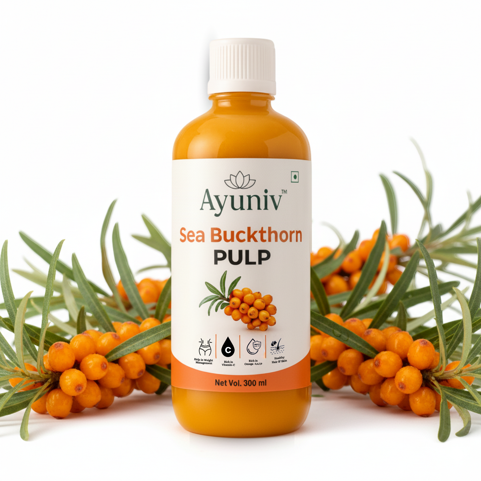 "Sea Buckthorn Pulp Juice is a power-packed superfruit juice known for its exceptionally high Vitamin C content, Omega fatty acids (3, 6, 7 & 9), and powerful antioxidants. Made from carefully sourced sea buckthorn berries, this nutrient-dense pulp juice supports immunity, energy, skin health, and overall wellness. Rich in natural bioactive compounds, Sea Buckthorn Juice helps protect the body from oxidative stress, supports heart and digestive health, and promotes healthy skin and vitality. Its unique omega profile—especially Omega 7, rarely found in plant sources—helps nourish skin, joints, and internal tissues from within. This juice is an ideal daily wellness drink for people looking for a natural immunity booster, antioxidant-rich nutrition, and plant-based omega support without artificial additives."